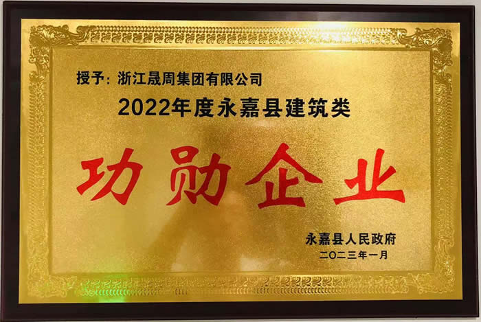 2023年1月永嘉县人民政府授予:浙江晟周集团有限公司“功勋企业”