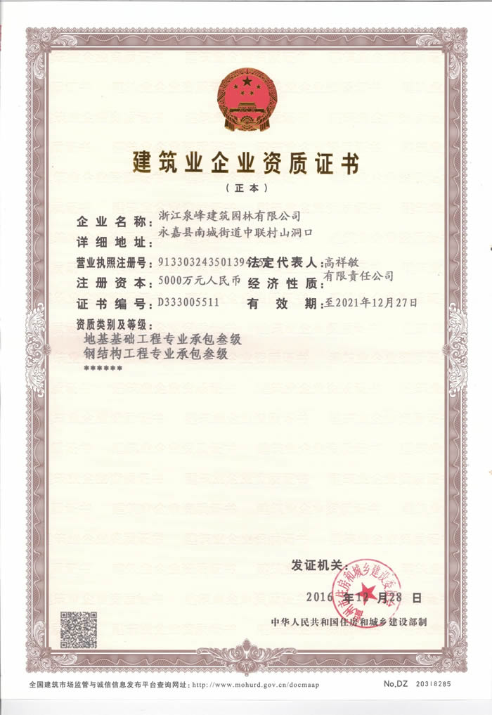 资质证书 正本